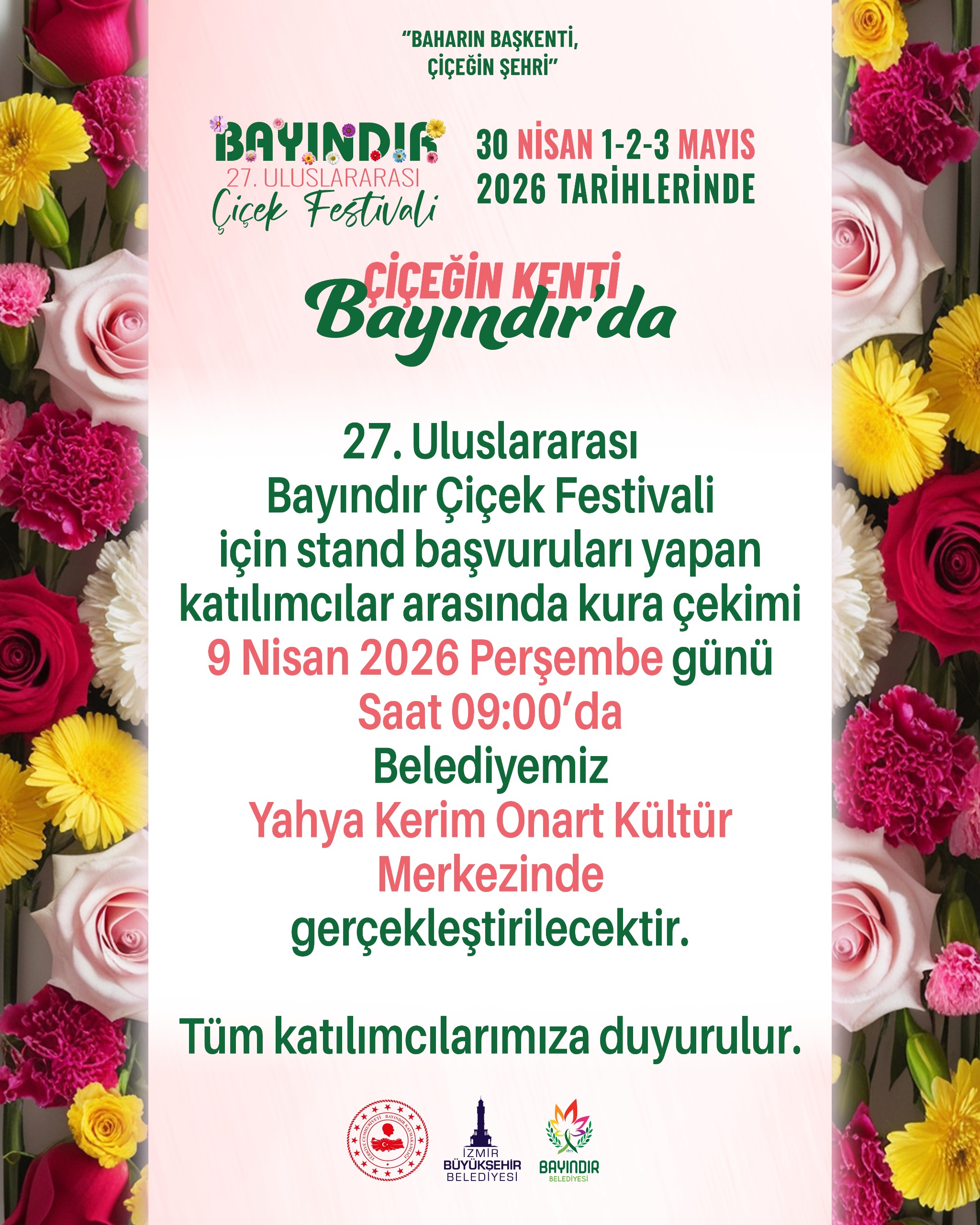 27. Uluslararası Bayındır Çiçek Festivali Stand Kura Çekimi Duyuru